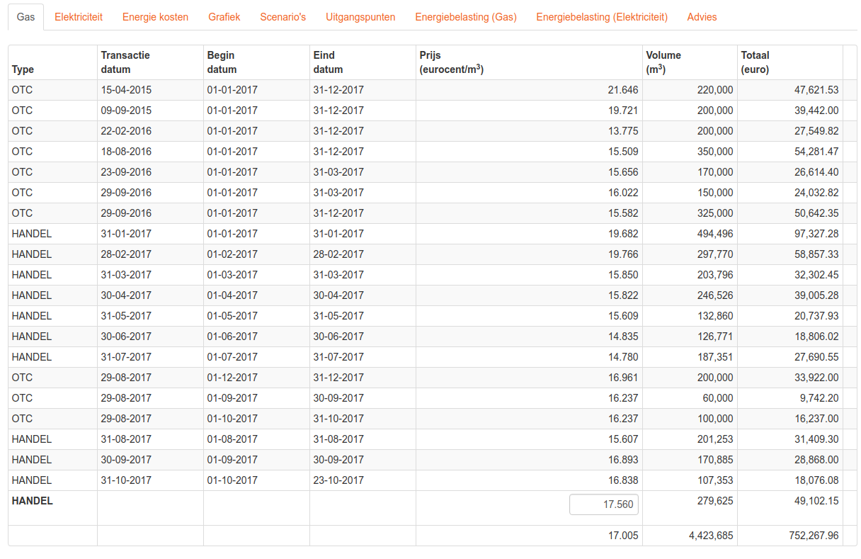 WKK, ondersteuning bij energie inkoop en verkoop In de tuinbouw wordt veel gebruik gemaakt van Warmte Kracht Koppelingen (WKK). Een WKK zet aardgas om in warmte en elektriciteit. De warmte gaat de kas in, de elektriciteit wordt deels zelf gebruikt en deels verkocht. Een tuinder wordt dan energie leverancier. Het verschil tussen de inkoopprijs van gas en de verkoopprijs van elektriciteit, gecorrigeerd voor diverse factoren, noemen we de sparkspread. Kort gezegd "de Sparkspread is wat de tuinder per Megawattuur (MWh) overhoud aan een WKK". Elektriciteit wordt verkocht op de OTC (lange termijn) en APX (korte termijn) markt. Deze markten zijn ingewikkeld om op te handelen en moeilijk te voorspellen. Wij ondersteunen tuinders bij deze handel. Hiervoor hebben we een "Sparkspread-tool" ontwikkeld. Van diverse handelsplatforms kunnen we de ingenomen posities voor gas en elektriciteit overnemen. Vervolgens kunnen we de sparkspread en de bijdrage per m2-tuin tonen. Op basis van de verzamelde informatie kunnen we diverse informatie tonen en analyses doen. In een grafiek kunnen we de posities over tijd tonen en de ontwikkeling van de sparkspread weergeven. Mocht op bepaalde momenten in de tijd er onbalans zijn in de ingenomen posities (meer elektriciteit verkocht, dan gas om dat op te wekken ingekocht), dan corrigeert onze tool daarvoor met prijs informatie van dat moment. Op de achtergrond houdt de Sparkspread-tool namelijk de actuele energie prijzen in de gaten. Daardoor kunnen we altijd posities doorrekenen als we nu zouden besluiten al het gas dat nog moet worden ingekocht in te kopen en omgekeerd. Verder biedt de sparkspread tool de mogelijkheid om scenario's door te rekenen. In deze scenario's kunnen verwachte toekomstige prijzen worden ingevoerd, of kan er gekozen worden om meer of minder uren dan gepland de WKK te gebruiken. Ook kan er gekozen worden minder of meer elektriciteit op de korte of lange termijn markt te verkopen. Al deze informatie in combinatie met het advies van AOC Energie helpt klanten om meer uit hun WKK te halen. Deze tool wordt niet alleen door ons intern gebruikt, maar de klanten kunnen, indien zij dit wensen, ook zelf deze tool benaderen via de website van AOC Energie.